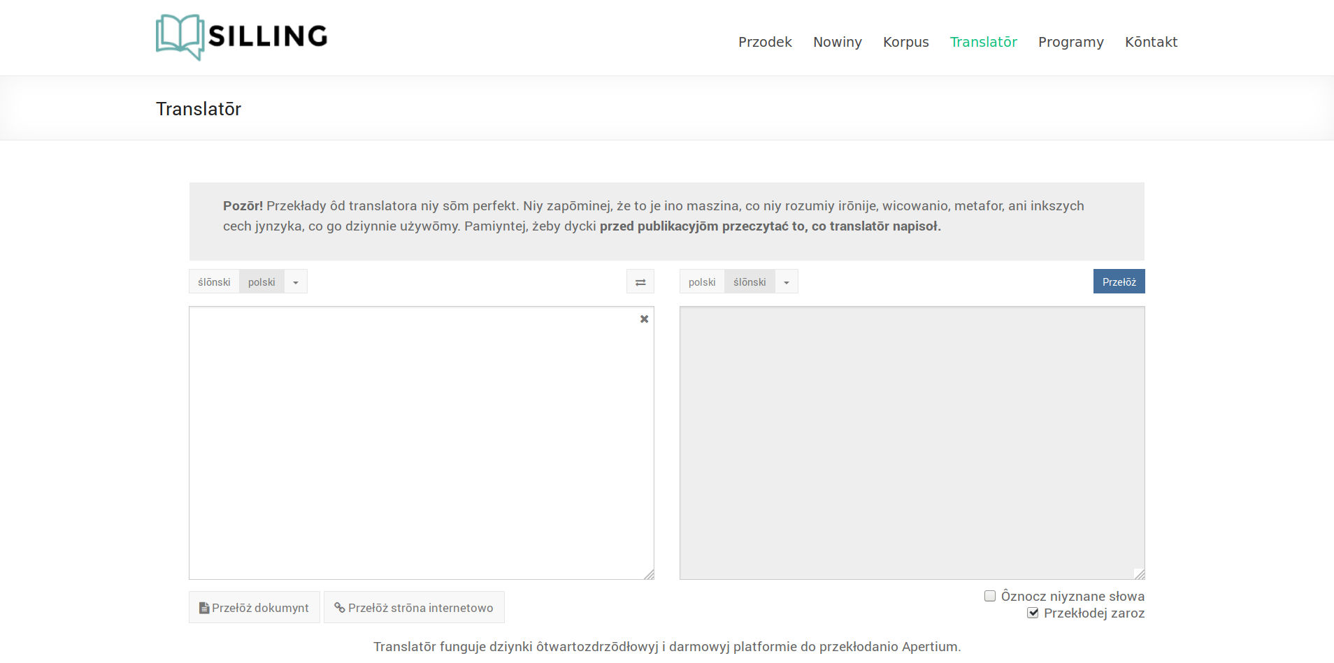 We serwisie idzie tyż znojś maszinowy translatōr polsko-ślōnski i ślōnsko-polski, co pōmoże sprownie przełożyć teksty w ôbie strōny. Ôkrōm tego wszyjskigo dostympny je tyż Korpus Ślōnskij Mowy, co może ôdpowiedzieć na rozmajte pytania na tymat ślōnskigo jynzyka.